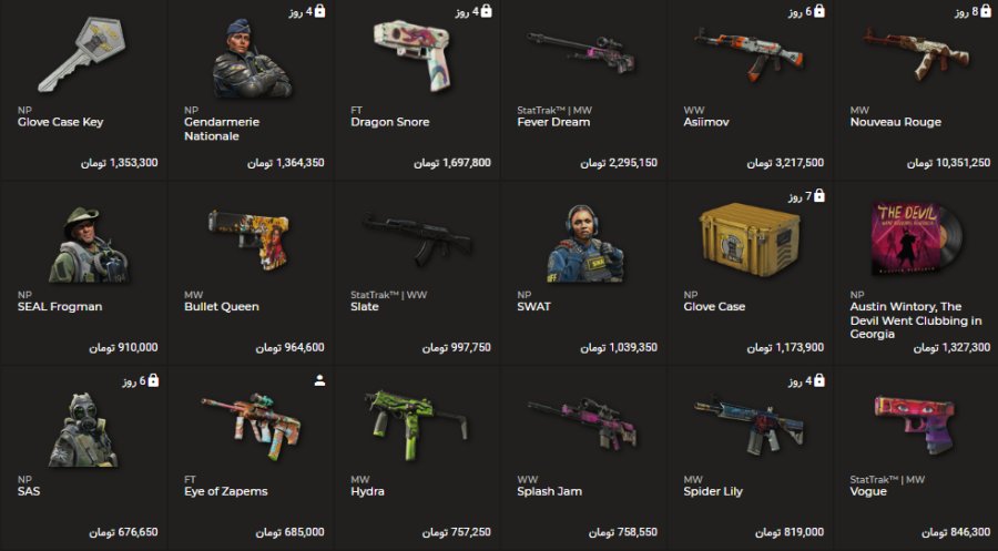 - خرید در زمان مناسب: در برخی موارد، قیمت اسکینها پس از آپدیتهای بازی تغییر میکند؛ پس باید زمان خرید و فروش را هوشمندانه انتخاب کنید.
