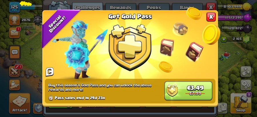 سوپرسل برای برگرداندن پلیرهایی که مدتی از بازی دور بودند یا چند وقتی است که خریدی انجام نداده اند، پیشنهادهای تخفیف دار ویژه ای می فرستد. اگر چند ماه (معمولا بین ۳ تا ۶ ماه) گلد پس نخرید، احتمال اینکه پیشنهاد خرید گلد پس با قیمت کمتر برایتان فعال شود، خیلی زیاد است. البته این تخفیف ها معمولا آخرای سیزن ظاهر می شوند، ولی باز هم ارزشش را دارد.