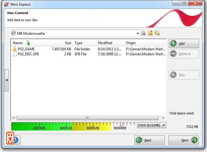 متاثر از حجم بازی ای که قصد استفاده از آن را دارید دیسک مورد نظر را انتخاب نمائید . این دیسک میتواند به صورت DVD با حجم 4.7 گیگابایت بوده یا یک دیسک Blu-ray دولایه باشد . با استفاده از نرم افزار های رایت که محبوبترین آنها و مورد استفاده ی ما در این آموزش Nero بوده پوشه ی PS3_Game و فایل PS3_DISC.FSB را بر روی دیسک مورد نظر به صورت DATA رایت کنید .