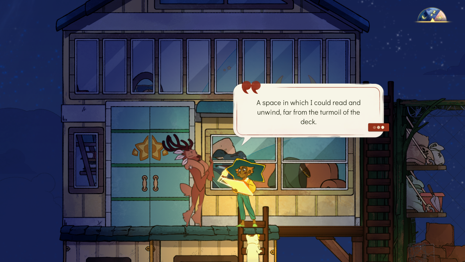 طبیعتا مهمترین ابزاری که در اختیار دارید کشتی شما است؛ کشتی شما که در ابتدای کار مانند یک قایق پناهجویان است، به مرور زمان پیشرفت کرده و به یک شهر بزرگ تبدیل خواهید شد، البته اگر به اندازه کافی ماهر باشید! پیدا کردن منابعی مانند چوب، آهن و یا گلیم –واحد پول بازی- ضروری است چرا که برای آپگرید کردن کشتی و ساخت مکانی امن و دوست داشتنی برای همسفرانتان به این منابع نیاز دارید. خود همسفرانتان -همین ارواحی که باید پیدا کنید- کارکترهایی دوست داشتنی با خصوصیاتی کاملا متفاوت هستند و مطمئن باشید تک تک لحظاتی که با آنها سپری میکنید، برای شما ماندگار خواهند بود. از آنجایی که این ارواح دیگر به طور کامل زنده نیستند، شکل و شمایل انسانی خود را از دست داده و هر کدام ظاهر یک حیوان یا موجودی فانتزی را به خود گرفتهاند؛ حتی تعدادی از آنها از دوستان یا آشنایان استلا هستند. اما مهمتر از پیدا کردن این ارواح، راضی نگه داشتن و کمک کردن به آنهاست؛ طبیعتا بیشترین وقتی که با آنها سپری میکنید روی کشتی خودتان خواهد بود. زمانی که یک روح برای اولین بار به کشتی شما قدم میگذارد، نیازمند مکانی برای زندگی است و بعد از اینکه این مکان را برایش فراهم کنید، باید به درخواستهای بعدی او برسید. ممکن است از شما بخواهد یک باغ برای کاشت درخت، مغازهای برای دوخت پارچه و یا یک نجاری برای برش چوب در کشتی درست کنید. بسته به اینکه چگونه به هرکدام از این ارواح و درخواستهایشان رسیدگی کنید، رفتار و حال روحی آنها تغییر پیدا میکند و خوشحال بودن آنها قطعا پرکها و مزیتهایی را به دنبال خواهد داشت. برای مثال، میتوانید غذای مورد علاقه آنها را بپزید تا ذوق مرگ شوند! حتی میتوانید آنها را بغل کنید تا کمی سر حال بیایند؛ اینکه کار سادهای مانند بغل کردن هم میتواند حال دوستانتان را بهتر میکند، باعث میشود بعد از هر مشکلی که برای یک کارکتر در خط داستانیاش به وجود میآید، فورا آپشن Hug را انتخاب کنید؛ کار ساده اما دوست داشتنی که هیچوقت تکراری نمیشود.