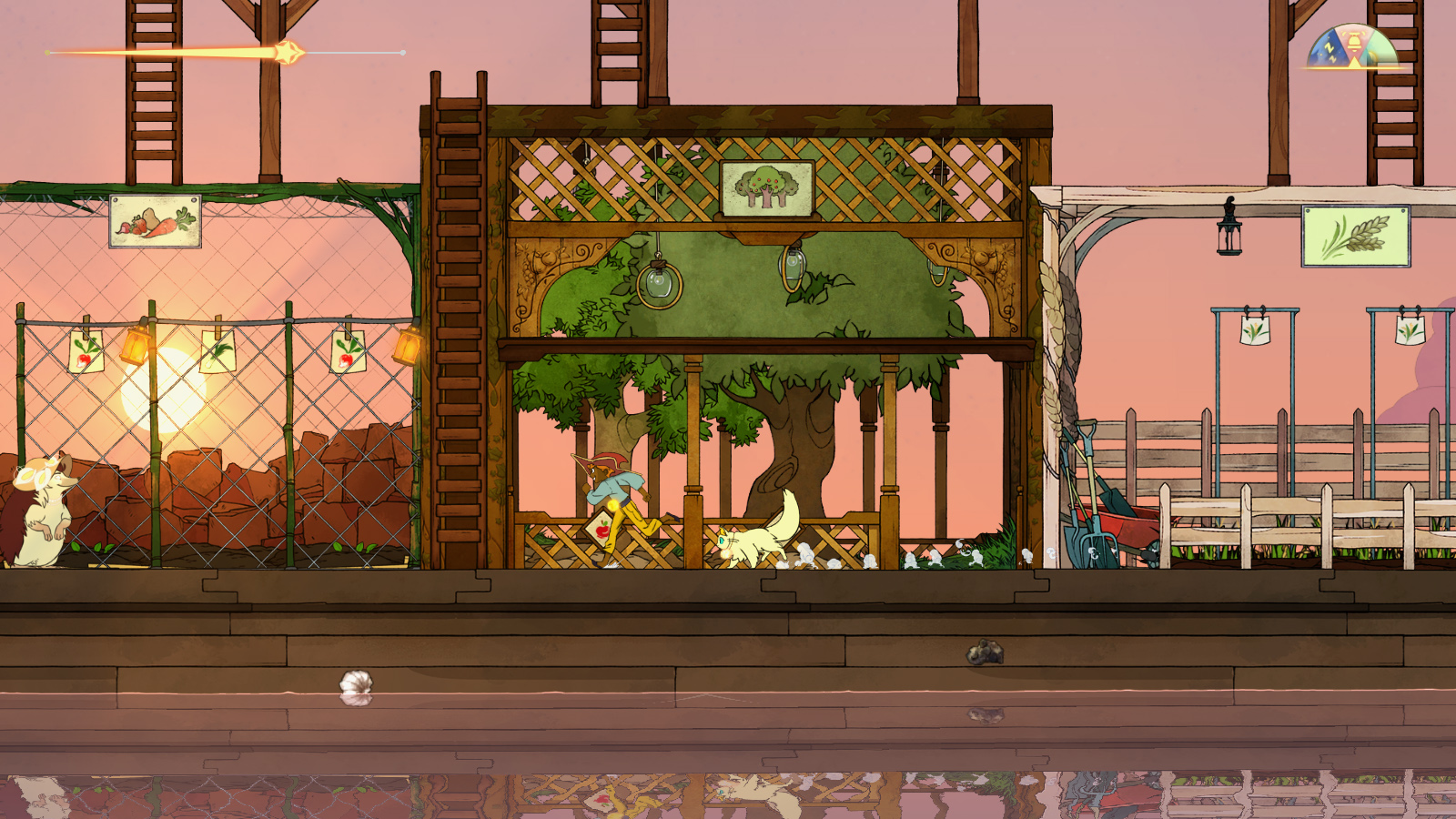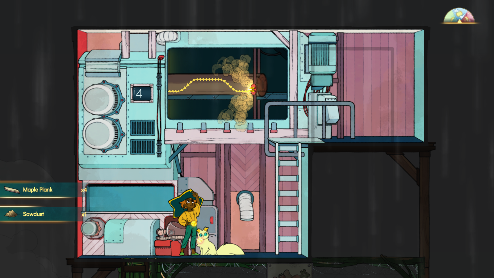 زمانی که روی کشتی هستید، گیم پلی بازی بیشتر شبیه به یک عنوان در سبک مدیریتی است تا یک بازی پلتفرمر. کارهایی که داخل کشتی انجام میدهید، تسکهای کوچکی مانند ماهیگیری، آشپزی، چوب بری، پارچه دوزی و یا حتی باغبانی هستند؛ البته این تسکها فقط برای پر کردن وقت در بازی قرار داده نشدهاند، بلکه انجام دادن هر کدام باعث میشود منابعی را به دست بیاورید که برای کامل کردن تسک بعدی ضروری هستند. در کنار این تسکها، باید دستی به سر و روی خود کشتی بکشید. سیستم شخصی سازی کشتی چندان پیچیده و عمیق نیست، اما برای بازی مانند اسپیریت فیرر به اندازه کافی مناسب است. علاوه بر مکان زندگی همسفرانتان، شما میتوانید با استفاده از بلوپرینتهایی که پیدا کردهاید بخشهای مختلفی مانند مهمان خانه، باغ، آشپزخانه، آسیاب بادی، نجاری و ... را به کشتی اضافه کنید و تعدادی از آنها را میتوان به مرور زمان پیشرفت داد. حتی قابلیت تغییر مکان این سازهها نیز وجود دارد و میتوان آنها را با توجه به عظمت کشتی به طور دلخواه جابجا کرد.