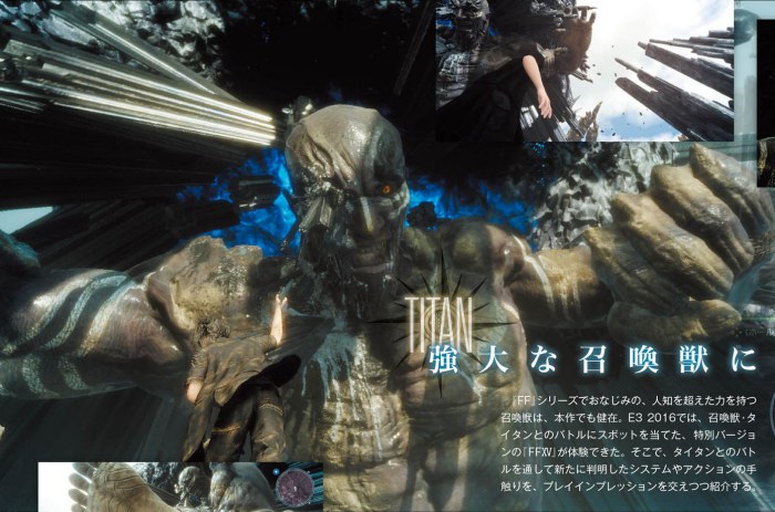 روز گذشته نشریه Famitsu با وسعت زیادی به Final Fantasy XV پرداخت و تصاویر جدیدی از این بازی را منتشر کرد. این بازی قرار است در تاریخ 9 مهر 1395 (30 سپتامبر 2016) در مقیاس جهانی عرضه شود.