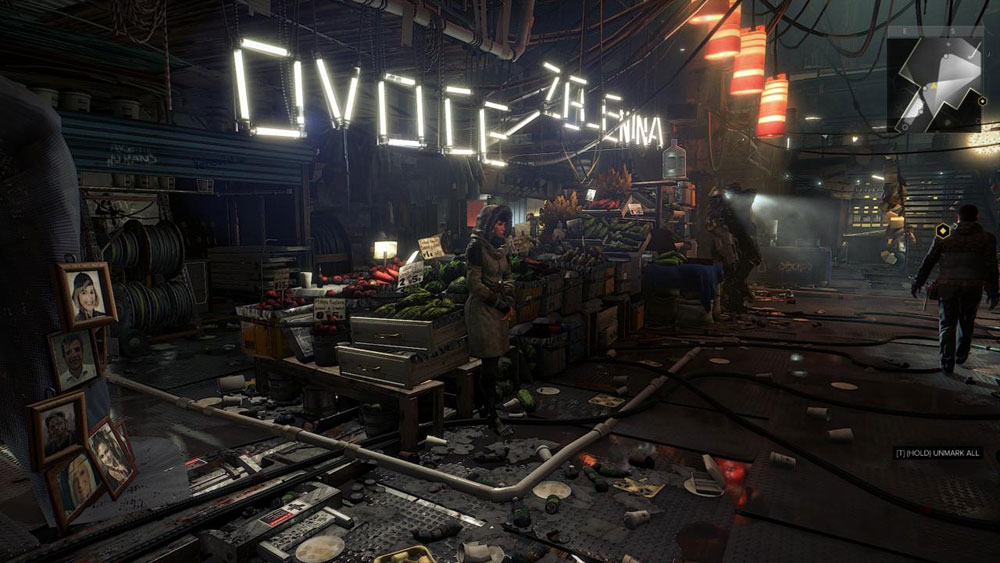 دنیای بازیهای Deus Ex بسیار با جزییات و زیبا طراحی میشوند. مراکز شهری همگی در پراگ (پایتخت جمهوری چک) مستقر شدهاند، جایی که شما بیشتر زمان خود را در آن خواهید گذراند. خیابانها پر است از تبلیغات نئونی پرنور و ساختمانهای آینده در میان معماریهای قدیمی اروپایی و خانههای ویران که شهر را قابل باورتر کرده است. در Mankind Divided از مسیرهای یکسان چندین بار عبور خواهید کرد و مکانهای مختلف را مکرر خواهید دید، و این به شما شناخت خوبی از خیابانها و ساختار شهر میدهد؛ شناختی که در مواجهه با موقعیتهای ناگهانی و جدید بسیار مفید خواهد بود. گشت و گذار در این فضاها برای یافتن اطلاعات و اشیا بسیار لذتبخش خواهد بود. همهجا از کاراکترها پر شده و کشفیات جدیدی برای پیدا کردن وجود دارند. ممکن است جعبههای روی یک قفسه را کنار بزنید و متوجه شوید یک نفر اسکناسهای خیس پشت آن قایم کرده، یا مثلا پشت یک مبل اسلحهی کمری پیدا کنید. شاید هم بفهمید Adam Jensen علیرغم رفتار سرد و بیروحش شدیدا از خوردن تنقلات رنگی و شیرین لذت میبرد ( کسی چه میداند !). بعلاوه، بخشی از ماموریتهای جانبی در بازی براحتی قابل تشخیص نیستند و فقط از طریق مکالمه با افرادی که گاها از کنارشان رد میشوید متوجه آنها خواهید شد. Mankind Divided به خیابان گردی ها و گشت زنی هایتان در بازی پاداش میدهد علاوه بر اینکه طراحی بسیار خوب اتمسفر بازی ، ساختمانها ، خیابانها وبطور کلی تمام شهر این گشت زنی را جذابتر هم میکند.