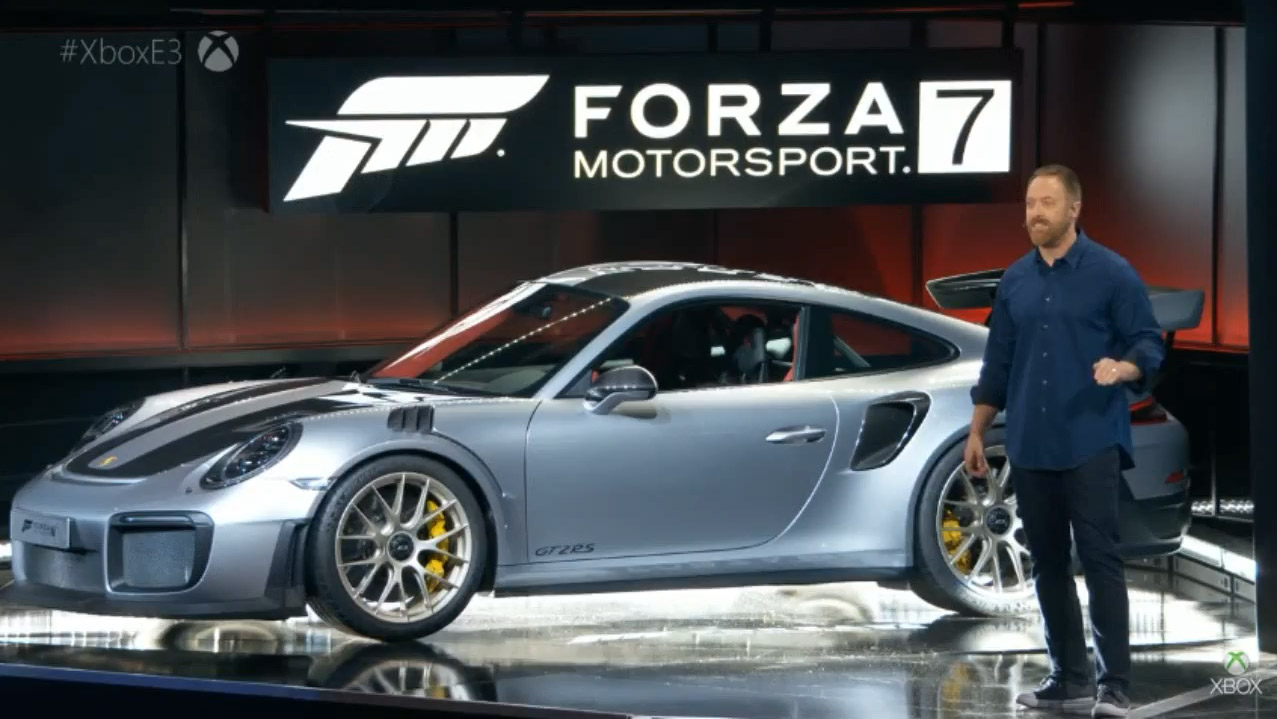 بازی Forza Motorsports 7 معرفی شد و تریلر و گیم پلی آن هم به نمایش درآمد که می توانید از طریق لینک موجود در انتهای این مطلب مشاهده نمائید. اما برنامه ی مایکروسافت برای معرفی فورزا موتور اسپرتز 7 در نوع خود جالب و دیدنی بود. همانطور که میدانید، با پایان قرارداد کمپانی پورشه با EA Games انحصار استفاده از اتومبیل های این کمپانی در بازی های Ea Games از بین رفته است و شاهد حضور اتومبیل های پورشه در بازی های اتومبیل رانی آینده از جمله GT Sports و Forza Motorsports 7 خواهیم بود. مایکروسافت از همین ویژگی در ارائه ی Forza Motorsports 7 استفاده کرده و برای اولین بار اتومبیل Porsche GT2RS را در کنفرانس خبری خود به جهانیان نمایش داد. حرکتی جالب که همکاری قدرتمندی بین مایکروسافت و Porsche را نوید میدهد.( پیش نمایش Gt Sports )