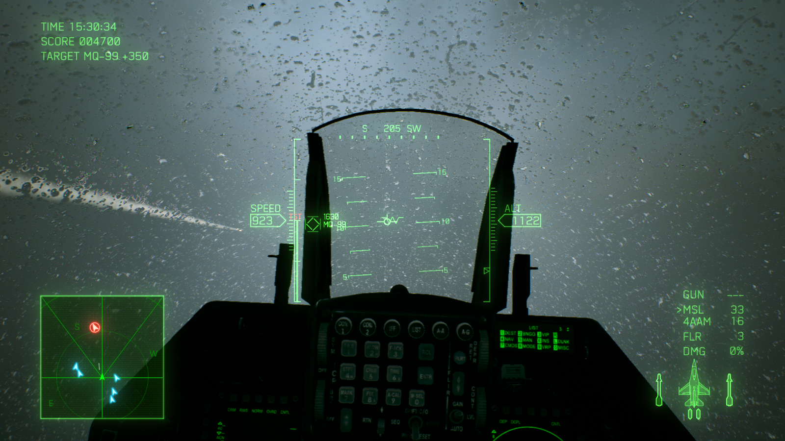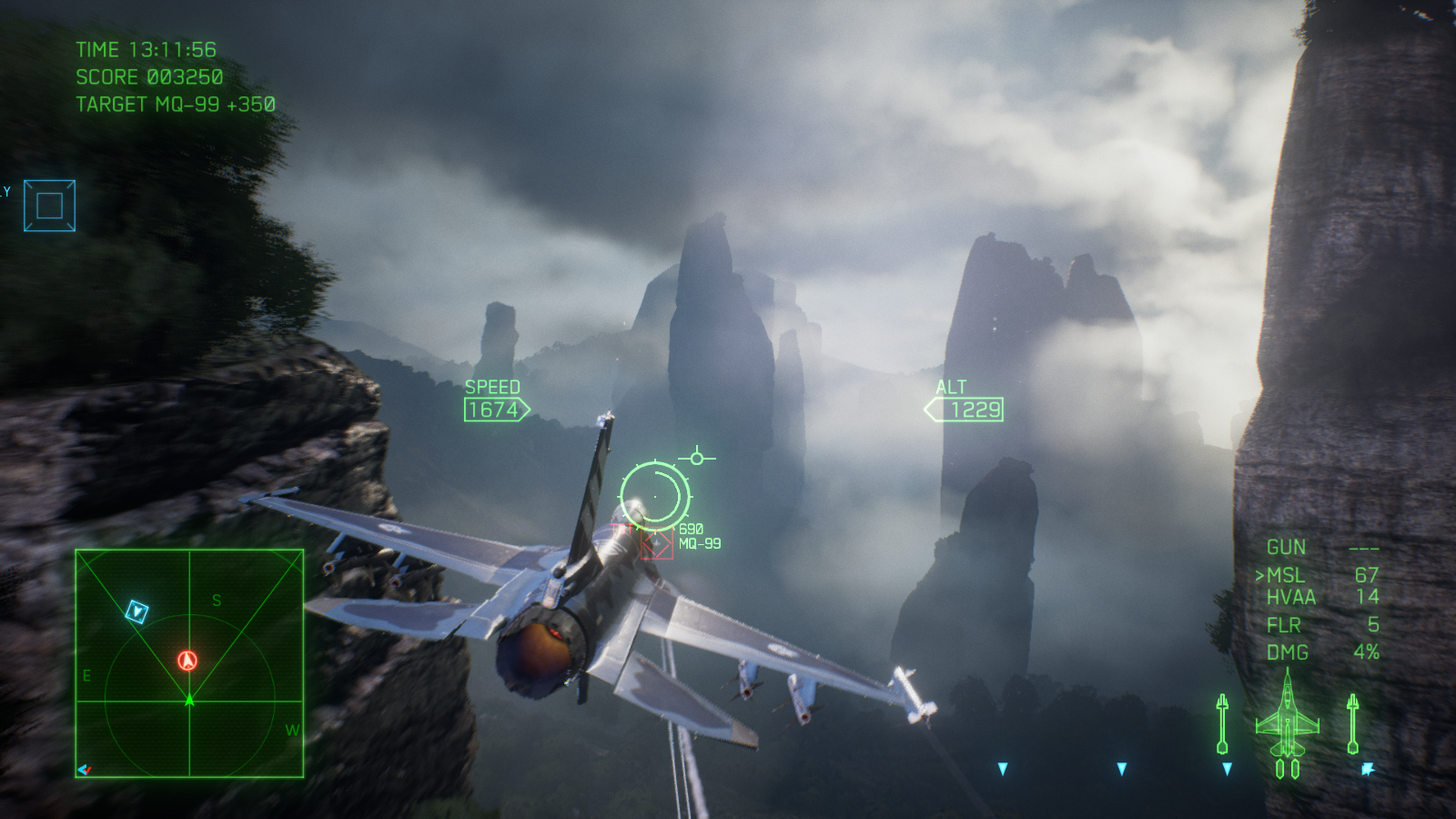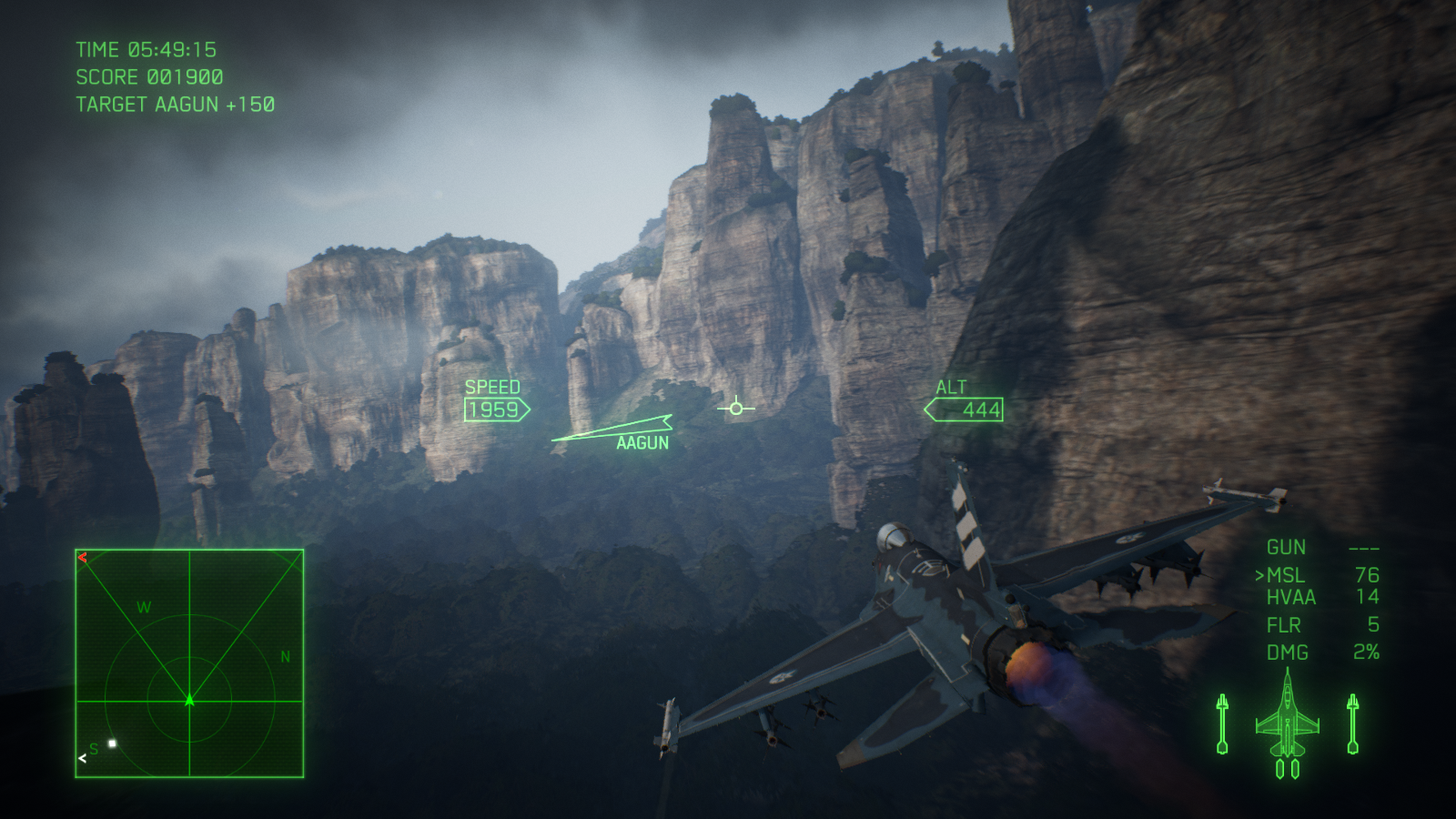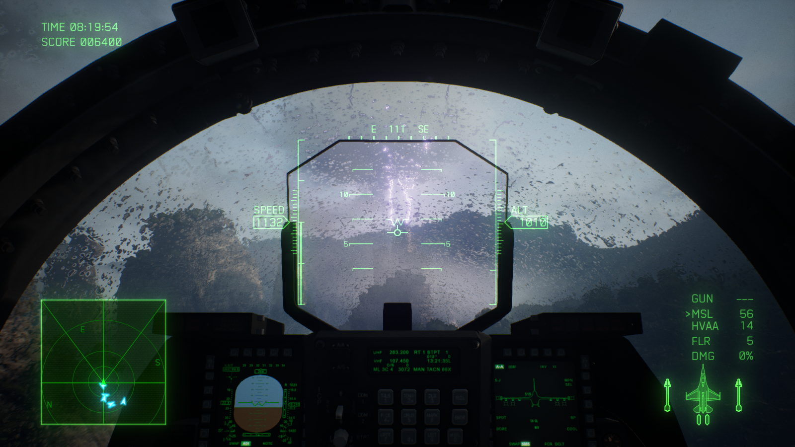 اما میان پردههای طولانی چیزی از گیم پلی عالی ایس کامبت 7 کم نمیکنند. درست از زمانی که برای بار اول کنترل یک هواپیما را به دست میگیرید و وارد اولین مبارزه میشوید، حس فوق العادهای به شما دست میدهد. فارغ از اینکه کنترل کدام جت را به دست گرفتهاید، از کدام اسلحه استفاده میکنید یا از چه نمایی بازی را تجربه میکنید، مبارزات بسیار هیجان انگیز، لذت بخش و دوست داشتنی هستند. فعالیتهایی که در اکثر مراحل انجام میدهید، تعقیب و گریزهای هوایی سریع و یا نابود کردن اهداف زمینی هستند اما به لطف لول دیزاین عالی و جزئیات بازی، گیم پلی واقعا متنوع است و در هیچکدام از 20 مرحله بخش داستانی یکنواخت نمیشود. هر مرحله شما را به منطقه متفاوتی برده و آبجکتیو جدیدی را پیش روی شما میگذارد؛ تعقیب و گریز سریع در میان انبوهی از ابرها، جست و جو برای هدفی خاص در یک طوفان شدید شن، مخفیانه عبور کردن از یک گذرگاه بسیار باریک یا تلاش برای زنده ماندن در یک شرایط آب و هوایی نا مساعد، از جمله چیزهایی هستند که شما در مراحل بازی تجربه خواهید کرد. ممکن است بازی خطی باشد، اما شرایطی که هر مرحله شما را در آن قرار میدهد آنقدر جذاب هستند که دیگر این خطی بودن زیاد به چشم نمیآید. به شخصه از تعقیب کردن هواپیماهای دشمن در میان ابرها در آسمان و یا مانور دادن بین ساختمانهای بلند روی زمین، واقعا لذت بردم؛ اینکه در تودههای ابر پرواز کنید و ندانید هر لحظه ممکن است چه چیزی جلوی شما ظاهر شود، بسیار هیجان انگیز و ترسناک است. فقط مواظب باشید در حین پرواز کردن مانند من به یک کوه بزرگ برخورد نکنید! فاکتور مهم دیگری که جذابیت مبارزات را چندین برابر بیشتر میکند، دوربین بازی است؛ اگر از میان ابرها یا نزدیک به یک صاعقه پرواز کنید، دوربین به لرزش در میآید و هنگام سرعت گرفتن و یا چرخیدن دوربین کمی اینطرف و آنطرف میرود. این ویژگی باعث میشود بازی یک حالت سینمایی پیدا کند و شما بیشتر مجذوب مبارزات شوید.