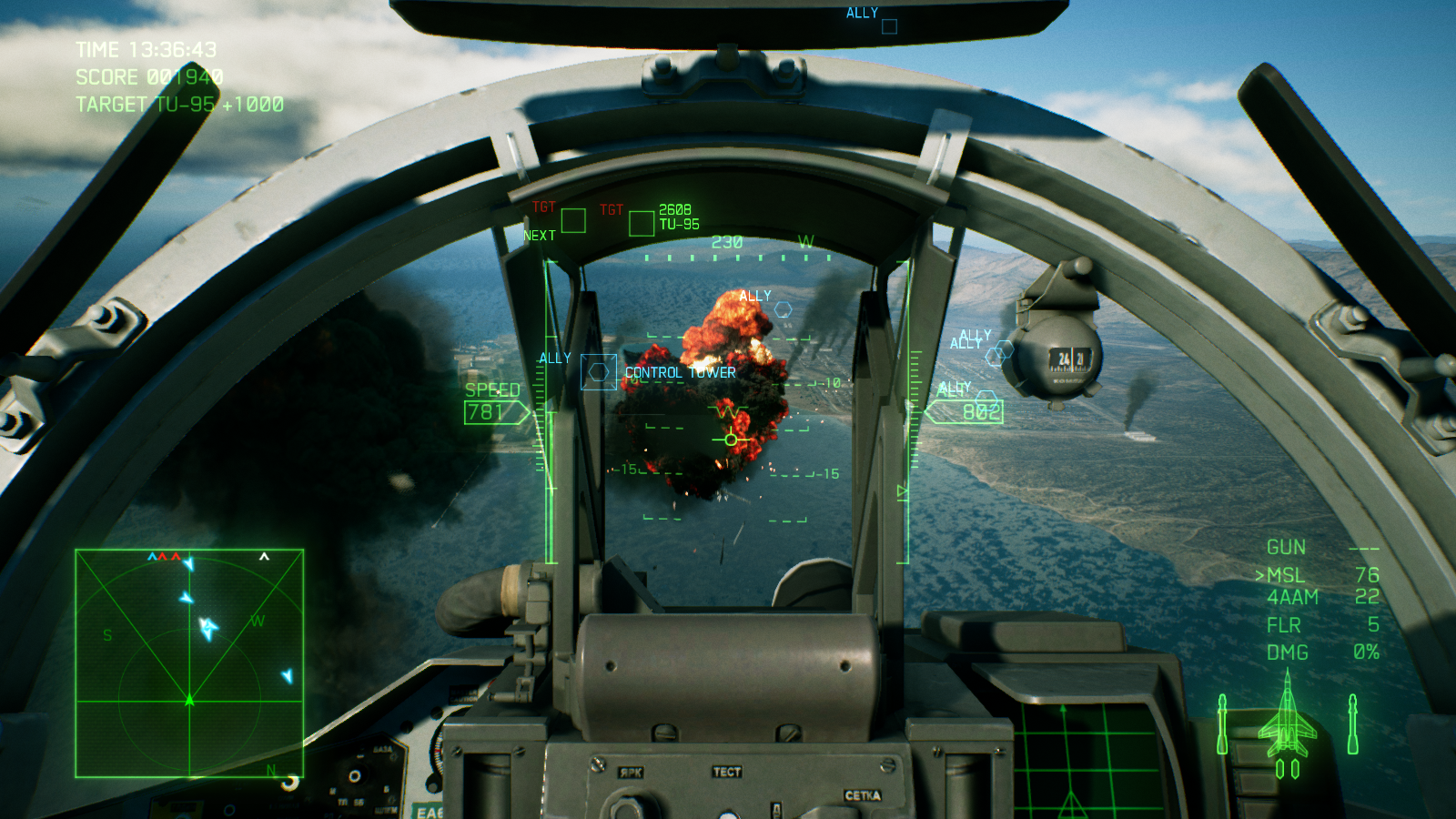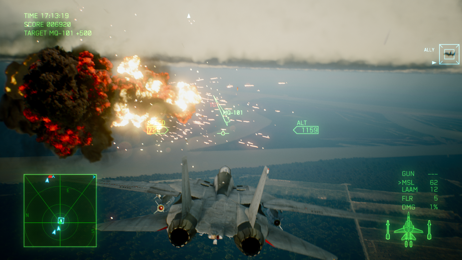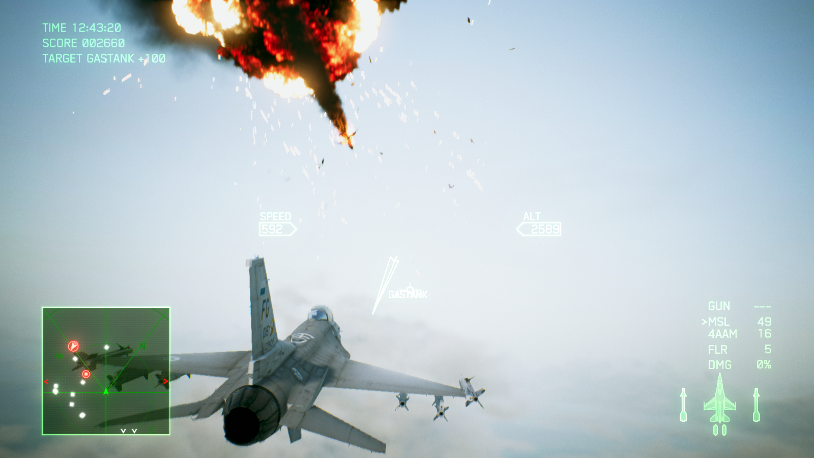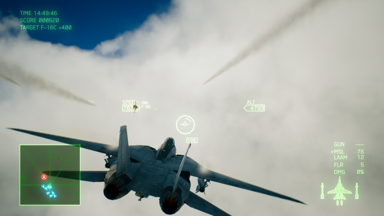 اما میان پردههای طولانی چیزی از گیم پلی عالی ایس کامبت 7 کم نمیکنند. درست از زمانی که برای بار اول کنترل یک هواپیما را به دست میگیرید و وارد اولین مبارزه میشوید، حس فوق العادهای به شما دست میدهد. فارغ از اینکه کنترل کدام جت را به دست گرفتهاید، از کدام اسلحه استفاده میکنید یا از چه نمایی بازی را تجربه میکنید، مبارزات بسیار هیجان انگیز، لذت بخش و دوست داشتنی هستند. فعالیتهایی که در اکثر مراحل انجام میدهید، تعقیب و گریزهای هوایی سریع و یا نابود کردن اهداف زمینی هستند اما به لطف لول دیزاین عالی و جزئیات بازی، گیم پلی واقعا متنوع است و در هیچکدام از 20 مرحله بخش داستانی یکنواخت نمیشود. هر مرحله شما را به منطقه متفاوتی برده و آبجکتیو جدیدی را پیش روی شما میگذارد؛ تعقیب و گریز سریع در میان انبوهی از ابرها، جست و جو برای هدفی خاص در یک طوفان شدید شن، مخفیانه عبور کردن از یک گذرگاه بسیار باریک یا تلاش برای زنده ماندن در یک شرایط آب و هوایی نا مساعد، از جمله چیزهایی هستند که شما در مراحل بازی تجربه خواهید کرد. ممکن است بازی خطی باشد، اما شرایطی که هر مرحله شما را در آن قرار میدهد آنقدر جذاب هستند که دیگر این خطی بودن زیاد به چشم نمیآید. به شخصه از تعقیب کردن هواپیماهای دشمن در میان ابرها در آسمان و یا مانور دادن بین ساختمانهای بلند روی زمین، واقعا لذت بردم؛ اینکه در تودههای ابر پرواز کنید و ندانید هر لحظه ممکن است چه چیزی جلوی شما ظاهر شود، بسیار هیجان انگیز و ترسناک است. فقط مواظب باشید در حین پرواز کردن مانند من به یک کوه بزرگ برخورد نکنید! فاکتور مهم دیگری که جذابیت مبارزات را چندین برابر بیشتر میکند، دوربین بازی است؛ اگر از میان ابرها یا نزدیک به یک صاعقه پرواز کنید، دوربین به لرزش در میآید و هنگام سرعت گرفتن و یا چرخیدن دوربین کمی اینطرف و آنطرف میرود. این ویژگی باعث میشود بازی یک حالت سینمایی پیدا کند و شما بیشتر مجذوب مبارزات شوید.