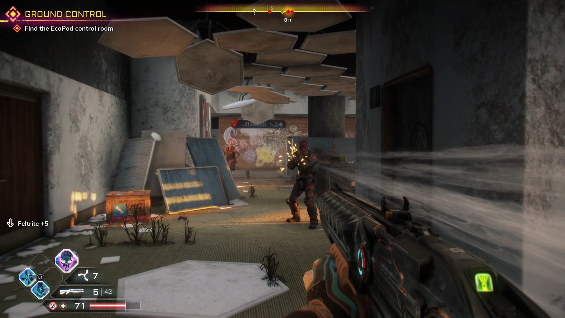 البته انجام دادن ماموریتهای فرعی و اصلی بازی بدون پیدا کردن آرکها تقریبا غیر ممکن است. آرکها مکانهای مختلفی در نقشه بازی هستند که با پیدا کردنشان میتوانید قابلیتها و اسلحههای جدید به دست آورید. از آنجایی که پیدا کردن آرکها جزء خط داستانی نیستند، پیشنهاد میکنم حتما به گشت و گذار در نقشه بازی بپردازید. این قابلیتها و اسلحهها عالی طراحی شدهاند و علاوه بر اینکه کار شما را بسیار آسان میکنند، سرعت مبارزات را نیز چندین برابر افزایش داده و هیجان خاصی به آنها میدهند. میتوانید دشمنان را با یک ضربه قدرتمند به آسمان پرتاب کنید و یا با تمام قدرت روی سر آنها فرود بیایید و آنها را با خاک یکسان کنید، میتوانید یک محافظ یا سنگر مجازی به وجود بیاورید تا از حملات دشمنان در امان باشید و یا دشمنان را با استفاده از نیروی Vortex روی هوا معلق نگه دارید. این قابلیتها، اسلحههایی که در اختیار دارید و یا حتی ابزار کوچک شما مثل Wingstick، به مبارزات تنوع میبخشند و هوش مصنوعی خوب دشمنان، باعث میشود شما مدام در حال حرکت باشید و سرعت مبارزات هیچگاه کاهش پیدا نکند. با یک نگاه میتوان فهمید که تیم سازنده قصد داشته مبارزات بازی را چیزی شبیه به مبارزات Doom درست کند و اگرچه در این امر به طور کامل موفق نشده، اصلا بد عمل نکرده است. علاوه بر اینها، شوتینگ عالی و گان پلی فوق العاده بازی بسیار دلچسب است و تا حد زیادی شما را راضی نگه خواهد داشت.
