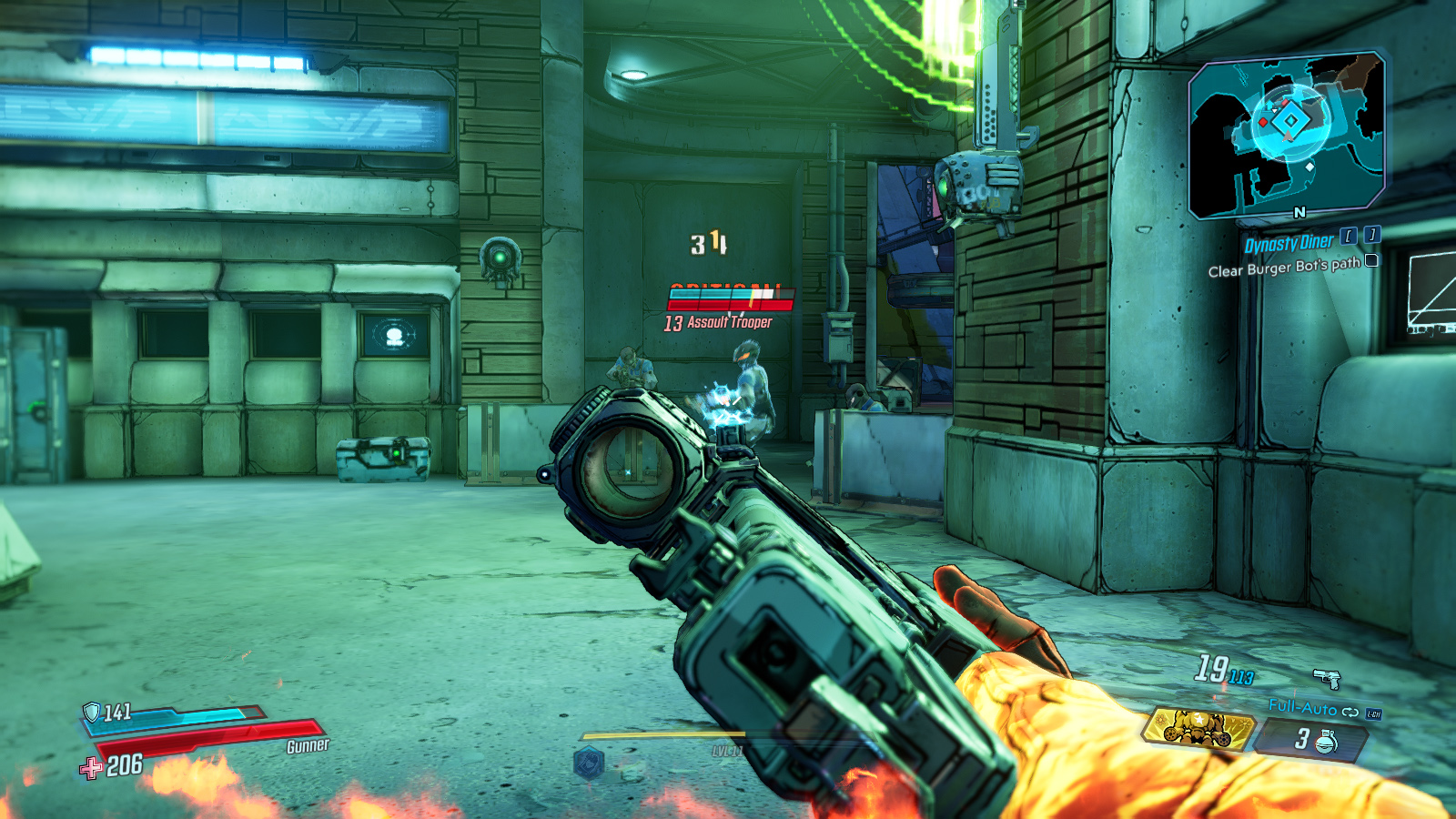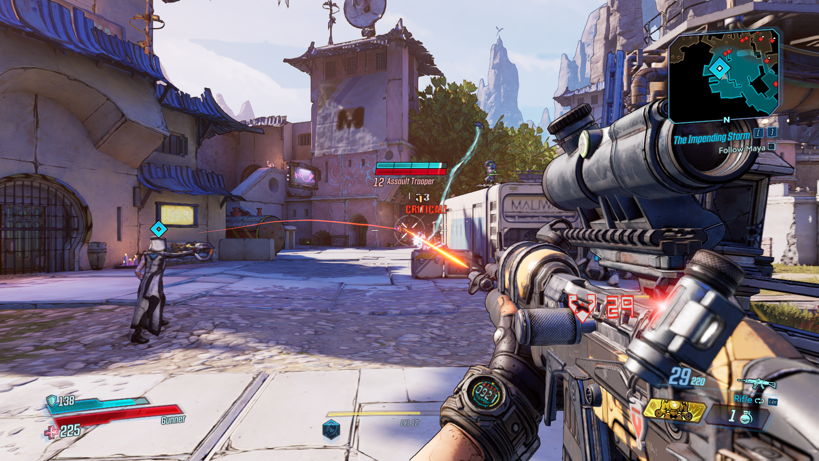 جای تاسف دارد که در بازی مثل بردرلندز 3 که Customization بخش اعظمی از آن را تشکیل میدهد، نمیتوان قطعات و یا همان Attachmentهای دلخواه را روی اسلحهها سوار کرد. سیستم تولید اسلحهها کاملا تصادفی است، چه اسلحههایی که در فروشگاهها پیدا میکنید چه اسلحههایی که از دشمنان میافتند؛ این یعنی گاهی اوقات شاید از ظاهر اسلحهای که در دست دارید راضی نباشید. ممکن است یک شاتگان دوربیندار نصیبتان شود، یا یک اسنایپ با یک خشاب بد ترکیب. البته این مسئله قابل تحمل است و آسیب بسیار زیادی به تجربه شما وارد نمیکند؛ چیزی که قابل تحمل نیست، باسها و مینی باسهای بازی هستند که کشتن بعضی از آنها به نیم ساعت طول میانجامد. در برخی باس فایتها تعداد دشمنان به شدت افزایش پیدا میکند و به خاطر سرسختی بیش از اندازه آنها، هیچ راهی ندارید جز اینکه اسلحهای که بالاترین Stats را دارد به دست گرفته و زمین و زمان را به رگبار ببندید. اگرچه حتی همان اسلحه هم نمیتواند زمان مورد نیاز برای شکست دادن باس مورد نظر را کاهش دهد. خوشبختانه تعداد باسها آنقدر زیاد نیست که جذابیت مبارزات را از بین ببرد اما وجود آنها فقط باعث میشود شما حصرت بخورید و به این فکر کنید که در صورت عدم وجودشان، مبارزات بردرلندز 3 میتوانست در تک تک لحظات بازی فوق العاده باشد.
