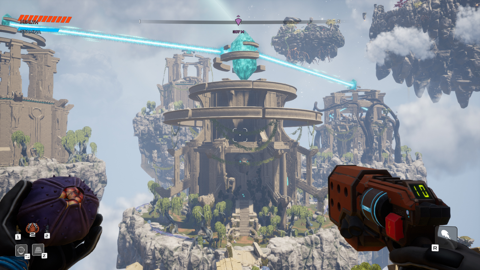 عنوان Journey to the Savage Planet قدرت انجام کاری را دارد که بسیاری از عناوین جهان باز از پس انجام آن بر نمیآیند؛ اینکه تا آخرین لحظه بازی شما را در مورد دنیای خودش کنجکاو نگه دارد. بر خلاف آثار مشهوری همچون No Man’s Sky، در JTTSP فقط یک سیاره کل نقشه بازی را تشکیل میدهد و اگرچه این سیاره از لحاظ سایز وسعت زیادی ندارد، اما جزئیات فراوان و رازهای بسیار زیادی که میتوان در آن کشف کرد و همچنین طراحی هنری عالی، آن را به یک دنیای زیبا و کم نظیر تبدیل کردهاند. درست از همان لحظهای که از سفینه خود پیاده شده و اولین قدم را در دنیای JTTSP بر میدارید، حس خوبی به شما دست میدهد؛ در یک عنوان جهان باز، هیچ چیز لذت بخشتر از این نیست که بدانید یک دنیای ناشناخته در انتظارتان نشسته و شما آزاد هستید که با تمامی ویژگیها و داستانهایش آشنا شوید. اما جای تاسف دارد که به خاطر یک سری مشکلات، گاهی اوقات این لذت آشنایی از بین میرود؛ بر خلاف دنیای جذاب JTTSP، روایت داستانی آن چندان خوشایند و قانع کننده نیست و بر خلاف گیم پلی مبتنی بر اکتشاف دوست داشتنی بازی، سیستم مبارزاتش به قدری ساده است که مدام باعث میشود شما با خود فکر کنید چه میشد اگر تیم سازنده مبارزات را به کل از بازی حذف میکردند.