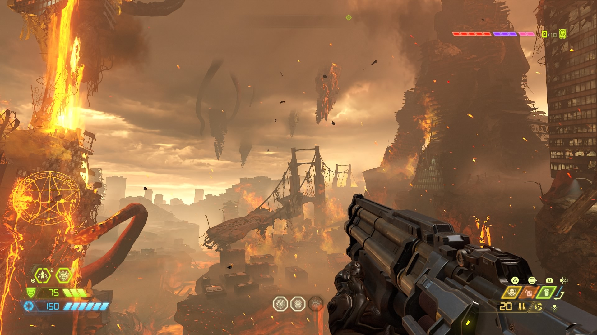 در یک نگاه کلی، ممکن است تمامی نسخههای فرنچایز Doom، عناوین اکشن محور سادهای به نظر برسند که هیچ حرف خاصی برای گفتن ندارند؛ اما اگر با دقت بیشتری هر کدام از آنها را مورد بررسی قرار دهید، متوجه خواهید شد که نه تنها تک تک این عناوین جزو بهترین بازیهای ژانر خود هستند، بلکه بسیاری از آثار اکشن محوری که در چند نسل اخیر منتشر شدهاند(حتی عناوین غیر FPS)، تعدادی از ایدههای دوست داشتنی خود را مدیون فرنچایز دوم هستند. Doom Eternal را نیز میتوان همانند نسخههای قبلی این فرنچایز، در دستهی بهترین شوترهای اول شخص قرار داد. اترنال علاوه بر اینکه به بهترین شکل ممکن به ریشههای سری وافادار مانده، ایدههای تازهای را با خود به همراه دارد که تجربهای نسبتا متفاوت را برای بازیکنان به ارمغان میآورند. اگرچه تمامی تغییرات اعمال شده در اترنال خوشایند نبوده و تکامل به حساب نمیآیند. مهمتر از آن اینکه بازی مشکل همیشگی این سری یعنی داستان کلیشهای را همچنان با خود یدک میکشد. هیچکدام از این مشکلات آسیب جدی به تجربه بازیکن وارد نکرده و چیزی از اتمسفر فوق العاده و گیم پلی بی همتا بازی کم نمیکنند، اما وجود آنها در عنوان کم نظیری مانند اترنال میتواند گاهی نا امیدکننده باشد؛ به خصوص برای طرفداران سرسخت این فرنچایز.