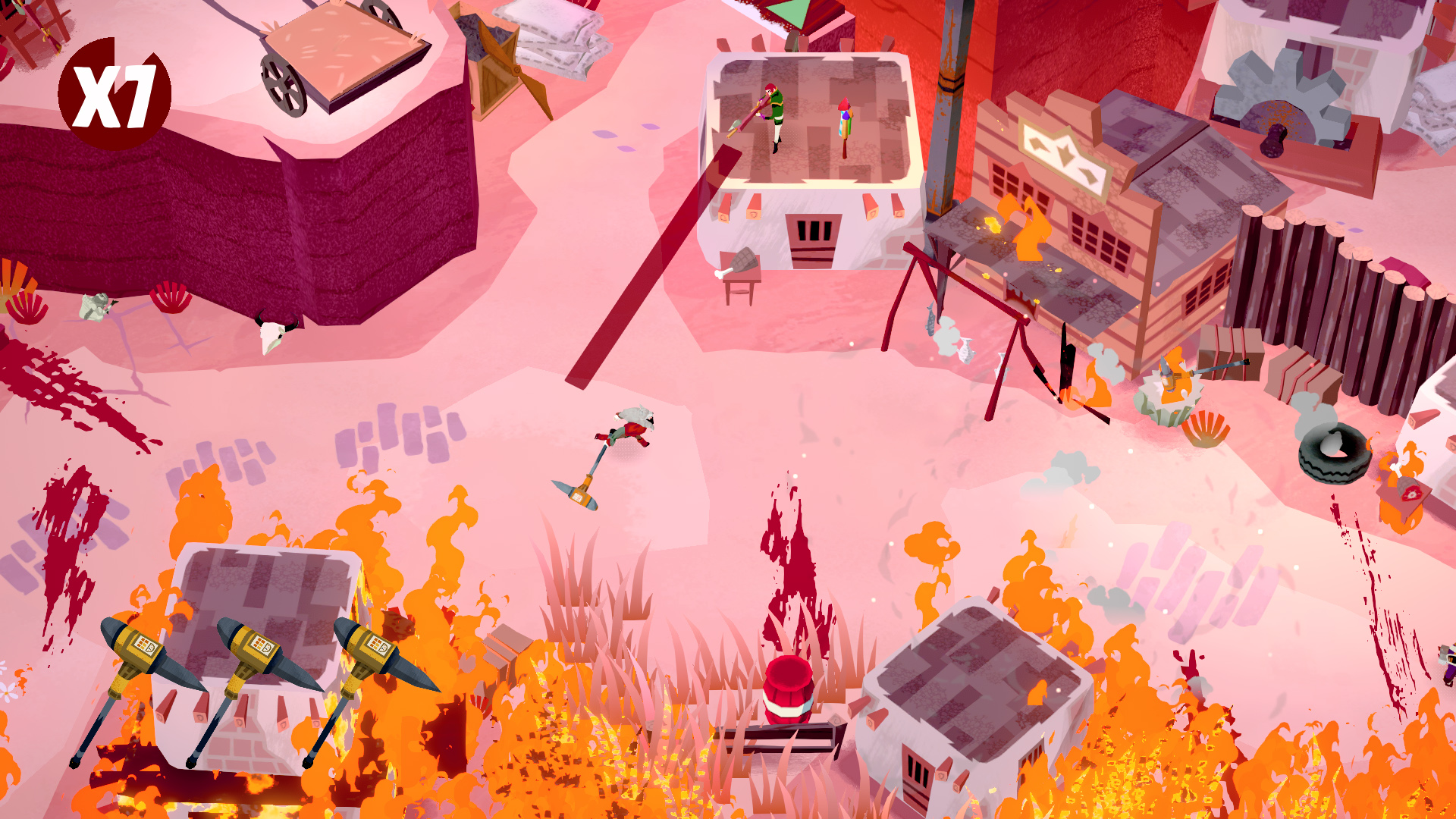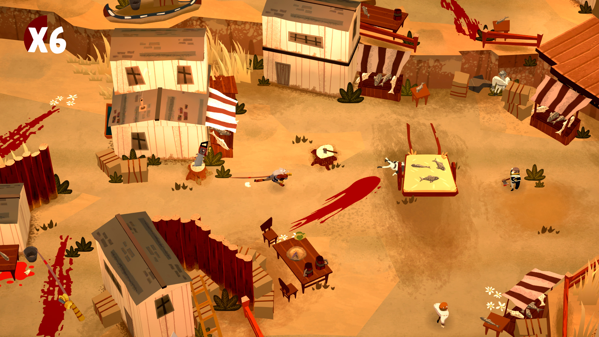 Bloodroots ویژگی دارد که مبارزاتش را از هر عنوانی که تا به حال تجربه کردهاید متمایز میسازد: آن هم اینکه هر چیزی را که در مراحل بازی به چشم میخورد، میتوان به عنوان یک اسلحه استفاده کرد؛ از یک پرتغال گرفته تا یک چوب ماهیگیری! باورش سخت است، اما هنگامی که در حال فرار کردن از سه سرباز تبر به دست هستید که با یک ضربه از تبرشان به فنا میروید، یک عدل کاه میتواند جان شما را نجات دهد(جلوتر توضیح میدهم چگونه)! البته همه چیز به سادگی برداشتن یک شئ از روی زمین و فرو کردن آن در دل دشمنان نیست؛ همانند بسیاری از عناوین مستقل چالش برانگیز، بلادروتس نیازمند مهارت و سرعت شماست و به خاطر کوچکترین اشتباه مجازاتتان میکند. همین مشخصه آن را به تجربهای جذاب، دوست داشتنی و هرزگاهی خسته کننده تبدیل میکند.