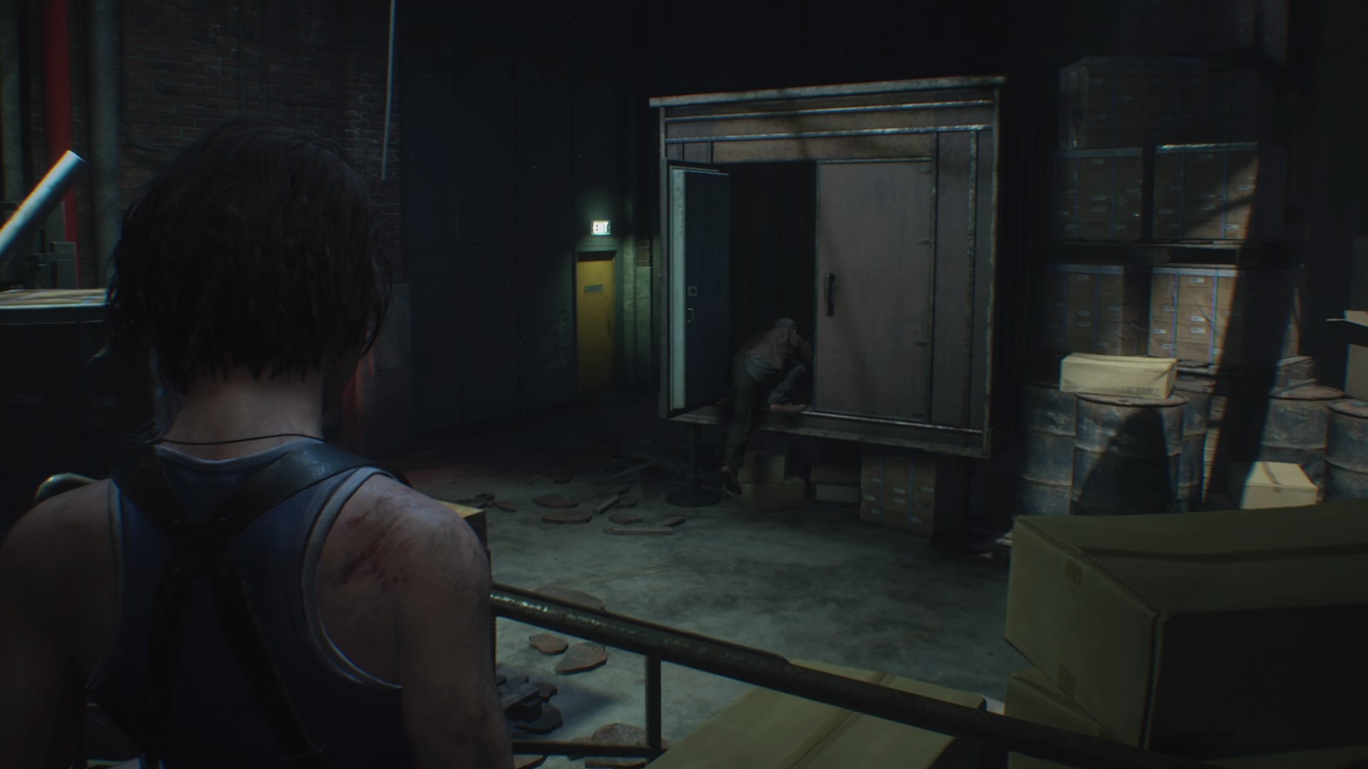 برخلاف همه ساکنان شهر، زیر و رو شدن شهر راکون توسط ویروس تی تنها عامل کابوسهای بزرگتر پیش روی جیل نیست و از همینجا و آماده شدن برای خروج از آپارتمان، یک «تایرانت» هولناک او را به قصد کشت دنبال میکند. جیل سابقه مواجهه با تایرانت را در جریان رویداد عمارت داشت ولی حتی او هم از دیدن این ماشین مرگ غافلگیر و وحشتزده میشود. بدتر از همه اینکه جیل خیلی زود متوجه میشود که این هیولا در بین این همه شهروند سالم یا مبتلا به ویروس، خود او را به عنوان هدف اصلیاش تعقیب میکند و چیزی هم جلودارش نیست. درنتیجه فعلا تنها گزینه پیش رو برای جیل فرار است. کپکام همه این ترکیبات را در قالب یک رشته گیمپلی و کاتسین بینهایت هیجانی و پرسرعت، همراه با یک پرزنتیشن به شدت درگیرکننده و نفسگیر ارائه میکند که دستکمی از یک تجربه سینماتیک لایواکشن ندارد.