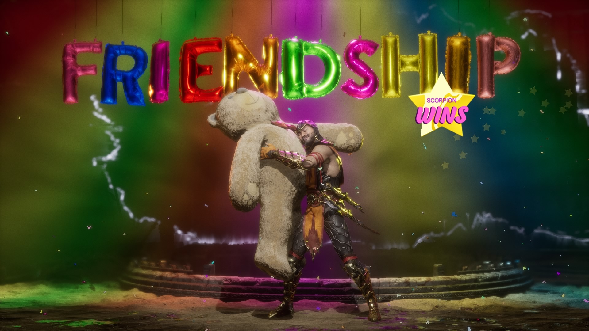 بجز بخش داستانی و سه کارکتر جدید، محتوای دیگری که آپدیت افترمث به بازی اضافه میکند، تعدادی اسکین و آیتم برای بخش شخصی سازی، چهار استیج جدید(و همچنین سه Stage Fatality) و تعدادی تاور جدید برای بخش Towers of Time هستند. علاوه بر اینها، آپدیتی که اخیرا برای بازی منتشر شده، فیچر محبوب و با نمک Friendship را به مورتال کامبت 11 اضافه میکند. میتوانید در انتهای هر مبارزه، به جای زدن فیتالیتی، فرندشیپ یک کارکتر را فعال کنید که باعث میشود کارکتر مورد نظر، کار خنده دار یا عجیبی مانند بغل کردن یک خرس عروسکی، نقاشی کشیدن و یا حتی بادبادک هوا کردن انجام دهد. اگرچه فرندشیپ در تضاد کانسپت کلی مورتال کامبت است و کمی مسخره به نظر میرسد، اما همین مسخره بودن آن است که دوست داشتنیاش میکند و استفاده از آن در انتهای هر مچ، بعد از اینکه انواع و اقسام بالاها را سر حریف خود در آوردهاید، حس بسیار خوبی دارد. لازم به ذکر است که فرندشیپ برای همه افراد رایگان بوده و برای استفاده از آن نیازی به خرید افترمث نیست.