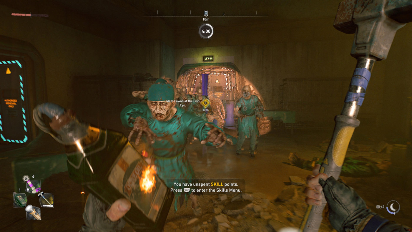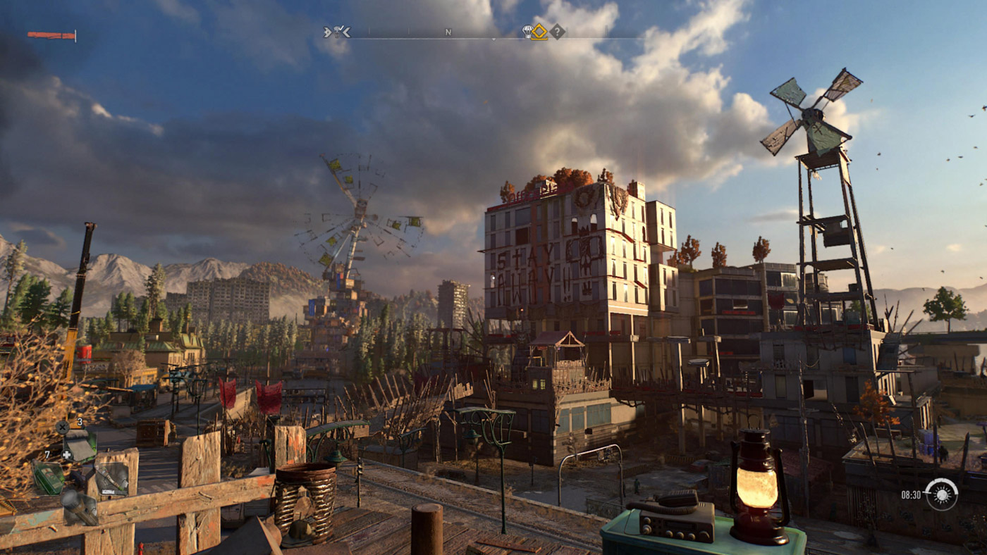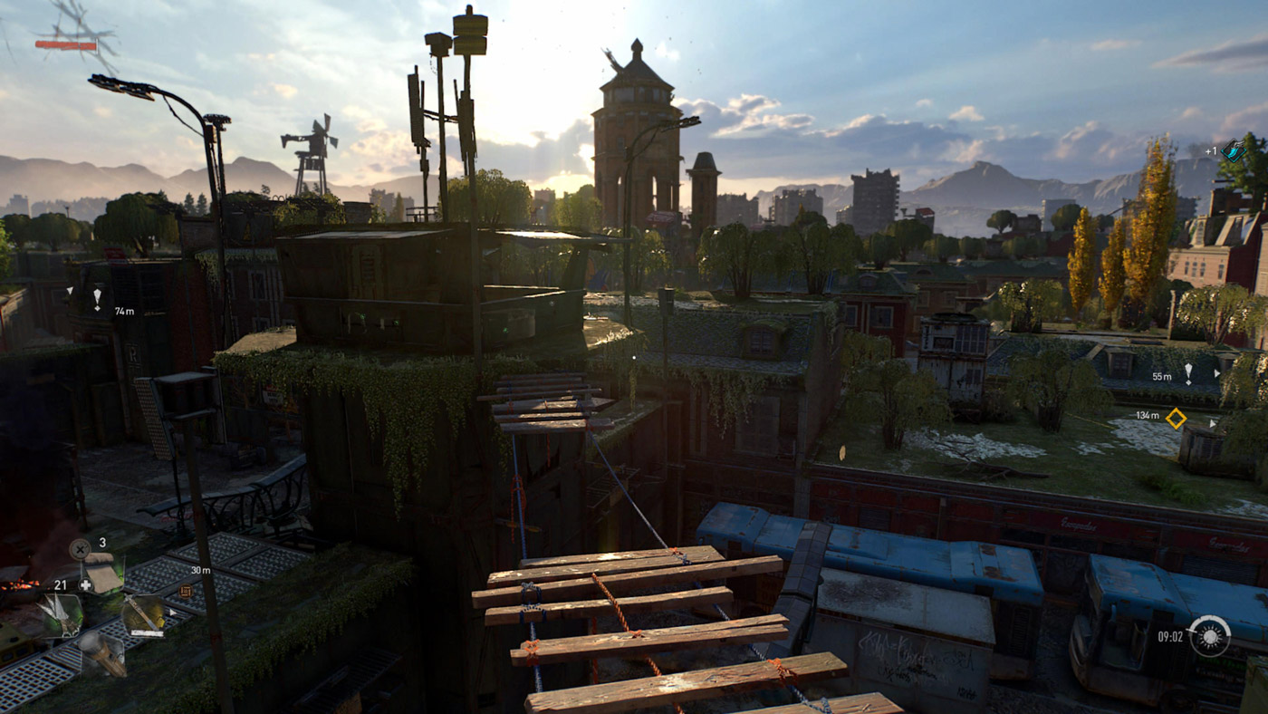 Dying Light 2 البته تنها محدود به اجرای پر ایراد ایدههای خوب و مشکلات فنی نیست و پس از آشنا شدن و خو گرفتن با هسته سخت و بد قلق آن، اتفاقا میتواند خصوصا از نظر گیمپلی تجربهای سرگرمکننده باشد. این بازی و شهر ویلادور، نقشهای نسبتا بزرگ را برای گردش و پیدا کردن کارهای قابل انجام دارد و اتفاقا، کارهای قابل انجام در این دنیا تنوع قابل قبولی هم دارند و تا ساعتها میتوان دنبال لوتها، گیرها و آیتمهایی گشت که کمک میکند تا از دشمنان و مراحل سختتر عبور کرد. در خیابانها و پشتبامهای شهر ویلادور، بازیکن میتواند تا ساعتها با انواع سلاح سرد مثل چماق و تبر زامبیها را قتل عام کند. زامبیها با توجه به چرخه پویای شب و روز، در طول روز آرامتر و در طول شب خشنتر و سریعتر هستند و البته در همین زمان هم هست که جمعیت و تنوع آنها به مراتب در خیابانها بیشتر میشود. به طور کلی، گردش شب و روز حتی در برخی فعالیتهای قابل انجام روی نقشه نیز تاثیرگذار هستند و تفاوت معناداری را در گیمپلی کلی ایجاد میکند. متاسفانه زامبیها (و حتی دشمنان غیرزامبی انسانی) در این بازی هوش مصنوعی چندان قوی ندارند و مبارزه سرد با آنها به صورتی طراحی شده که بیشتر میتوان به جنبه فان آن دل خوش کرد. البته در طول شب امکان تعقیب دستهای آنها هم وجود دارد که فرار از آنها هم با توجه به قابلیتهای پارکور چندان سخت و چالشبرانگیز نیست.