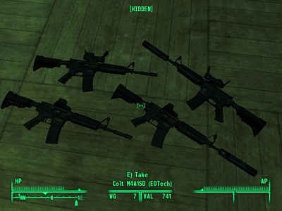 در کلّ در وگاس نو برای هر سلیقه آی اسلحه وجود دارد، از موشک انداز و تفنگ لیزری تا تفنگهاي واقعی. مانندM4