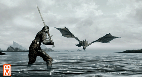 تا به حال شده است که در حین یک بازی به هر دلیلی صدای بازی را قطع کنید؟ در آن لحظه شاهد هستید که به هیچ عنوان بازی آن لذت قبلی را ندارد. یکی از عوامل مهم در بازی ها وجود صدا و موسیقی است و این ویژگی فقط در بازی های Musical و Rhythmic مهم نیست بلکه در همه ی سبک ها از عوامل مهم به حساب می آید. موسیقی این نسخه ازبازی را آقای Jeremy Soule نوشته است. همان طور که موسیقی های Jeremy Soule در دو نسخه ی قبلی درخشید و بسیار خوب Compose شده بود در این نسخه نیز شاهد موسیقی های زیبایی از وی بودیم. تغییرات موسیقی هم بسیار خوب کار شده بود. وقتی کنار رود می رفتیم موسیقی ملایم و صدای آن کم تر می شد ، وقتی بالای کوهی بودیم موسیقی تغییر می کرد و وقتی در حین جنگ بودیم موسیقی ریتم تند تری می گرفت و هیجانی تر می شد. یکی از موسیقی های زیبای این نسخه ، موسیقی منوی اصلی بازی بود که آن را در تریلرهای قبل از ریلیز بازی نیز شنیده بودیم. این موسیقی در هنگام نبرد با اژدها نیز پخش می شد و با یک نعره ی بلند اژدها شروع می شد. واقعا چنین موسیقی در حین نبرد با اژدها یک شاهکار به تمام معنا بود و آن صحنه ها را لذت بخش و فراموش نشدنی کرده بود. جالب است بدانیم که اگر موسیقی های داخل بازی را کنار همدیگر بگذاریم چیزی حدود 4 ساعت می شود! اگر بخواهیم به بخش موسیقی بازی از 10 نمره ؛ نمره ای بدهیم ، جرئت نداریم کمتر از 10 نصیبش کنیم. در بخش صداگذاری نیز تیم Bethesda بسیار عالی کار کرده بودند. صدای کشیدن شمیر ، حمله با تبر ، پرتاب تیرکمان ، زدن جادو ، پاشیدن خون ، نعره ی اژدها ، باز شدن در ، جاری شدن رود ، برف و بوران و از همه مهم تر دیالوگ های بازی بسیار خوب و زیبا گذاشته شده بود. همان طور که می دانید در این نسخه 60000 خط دیالوگ وجود داشت که این رقم یک رقم باور نکردنی و نجومی است! در این حال هرگز صدای یک گوینده را پشت سر هم نمی شنیدیم! در این بازی 70 گوینده ماهر صداگذاری کرده اند و در بعضی نقاط هم از گویندگان دیگر نیز استفاده شده است. بخش صداگذاری بازی آن قدر تمیز و بی اشکال درست شده است که بازیکن اصلا احساس نمی کرد که تنها یک نفر دارد صحبت می کند و یا صدای NPC ها را دارد از درون یک استودیو گوش می دهد. واقعا این بخش بازی شاهکار بود و عیبی نمی توان در آن پیدا کرد. به این بخش هم نمره 10 از 10 داده می شود و در کل بخش صدای بازی نمره کامل 20 از 20 را می گیرد .