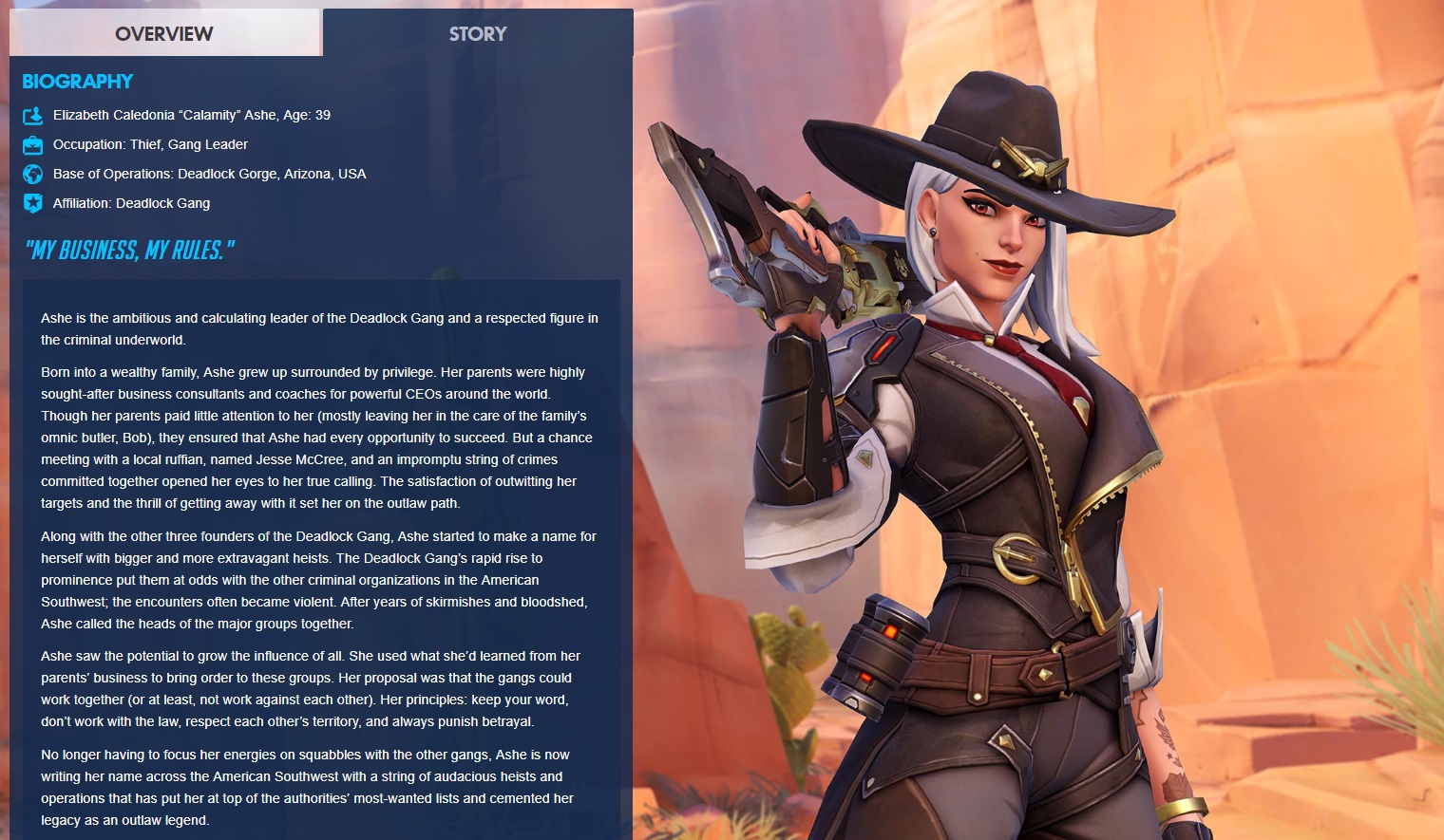 شرکت بلیزارد در جریان رویداد بلیزکان ۲۰۱۸ میلادی با انتشار تریلری از قهرمان جدید بازی Overwatch به نام Ashe رونمایی کرد.