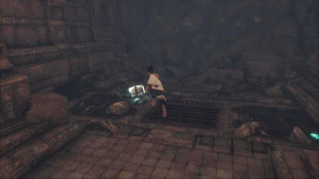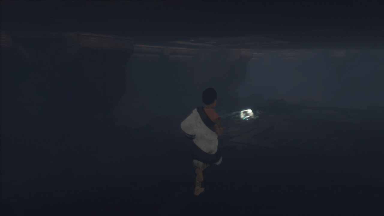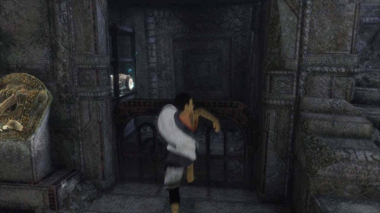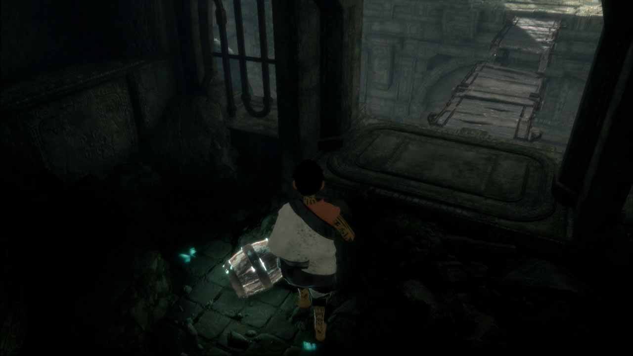 اینجا حواستون رو به تریکو برگردونین و صبر کنین تا بره روی صخره آخر اتاق. وقتی رسید اونجا صداش کنین تا دوباره شیرجه بزنه توی آب. با این کار یک موج بزرگ روی آب بوجود میاد. از این موج استفاده کنین تا به اهرم برسین و در رو باز کنین.
